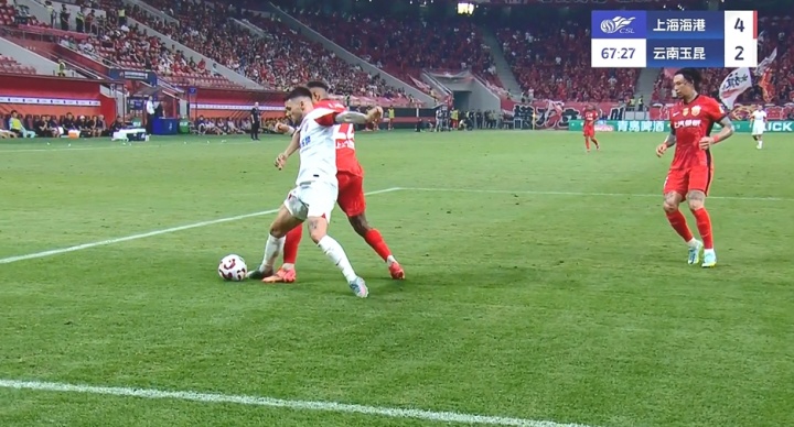被茹萨踢倒,裁判未有表示,VAR未介入。